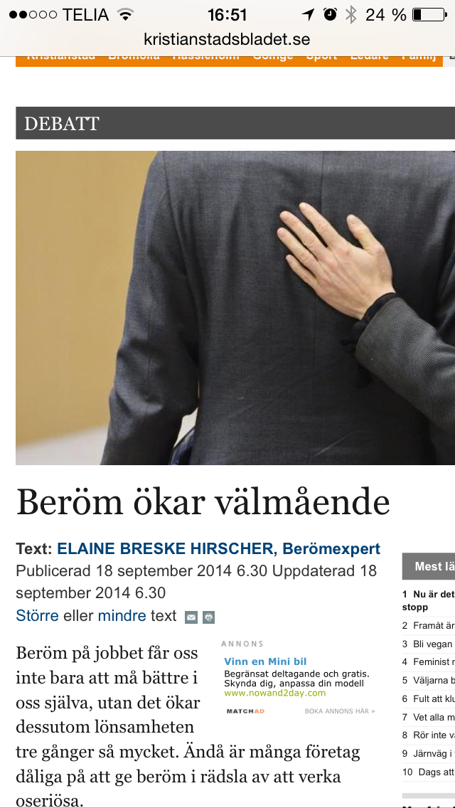 Genom att företagen börjar satsa på att dela ut ärligt och förtjänat beröm kan detta vända. Istället kan företagen få motiverade anställda och friskare personal som levererar kvalitet varje dag.