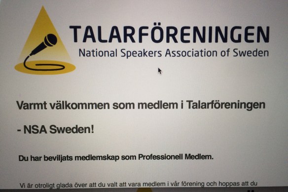 Ansökte om och accepterades som Professionell medlem i princip med vändande e-post. Så tacksam! Så stolt! Så glad! Så härligt! http://talarforeningen.se